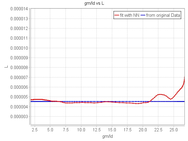 The SimulationToChart example parses data from a .raw file given directly from a transistor simulation from spectre. It then transforms the output columns of the data to the desired four columns (gm/id, fug, L, id/w) and trains a network based upon the transformed data. The trained network is then saved and loaded again to be used to analyze the achieved fit on the input data.