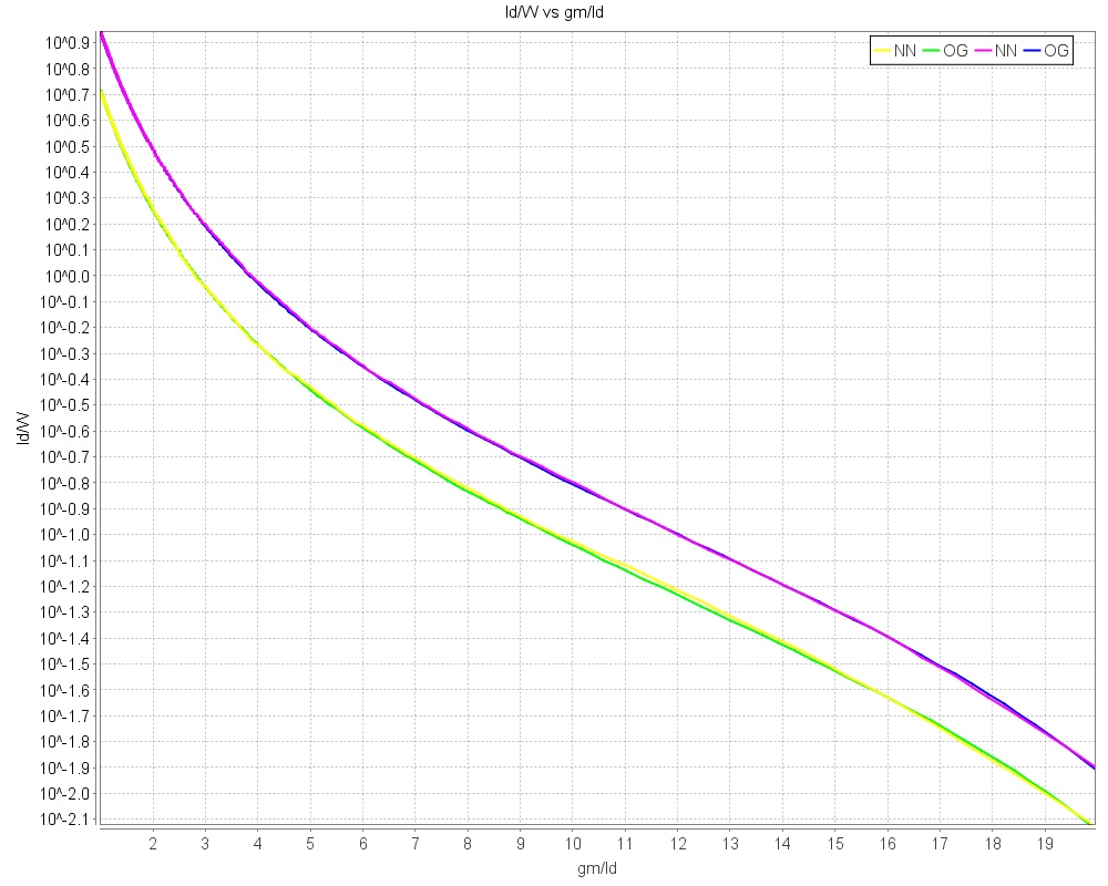 Now length vs gm/id are compared between the two